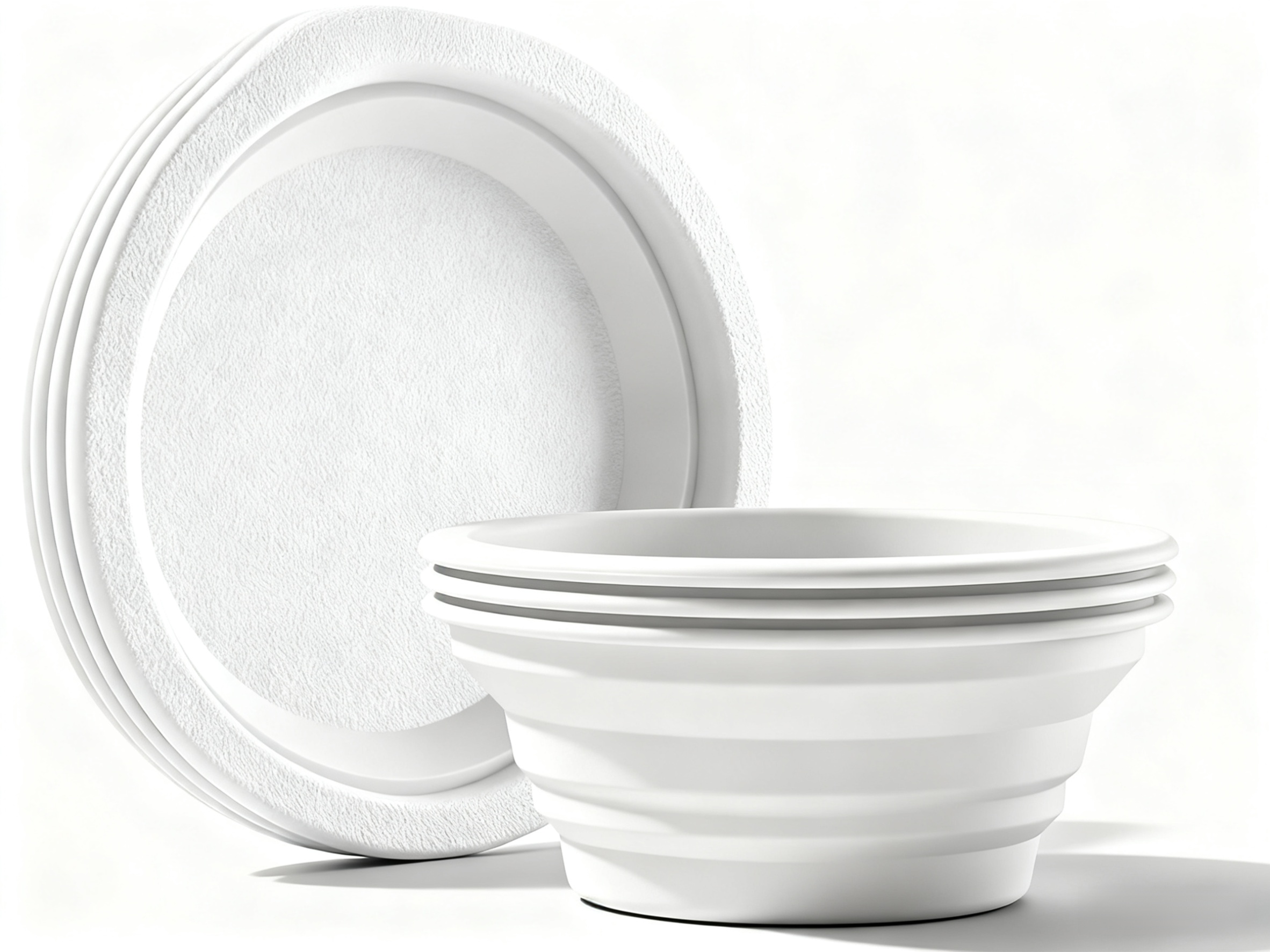 ชามพับได้แบบใช้แล้วทิ้งสำหรับการเดินทางกลางแจ้ง (แพ็ค 5 ใบ)